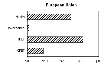 The European Commission (EC) is the executive body of the European Union, which consists of 15 Member States, each with the right to initiate legislation. The EC has so far committed $31,140,000 to TFET and $9,065,000 to CFET respectively. Humanitarian assistance has been distributed by the EC Humanitarian Aid Office (ECHO), through contracts with International NGOs, International Governmental Organizations and UN agencies.
