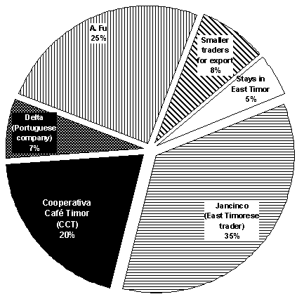 "Fair trade" coffee—by which coffee is sold internationally at prices that ensure a minimum and "fair" income for farmers—is one potential option for East Timorese producers. But present international demand for such coffee is less than East Timor’s annual crop and it relies on the consciousness and good will of individual retailers and consumers. In this regard, the potential benefits of "fair trade" for East Timor are rather limited and would probably only help a small number of coffee farmers.