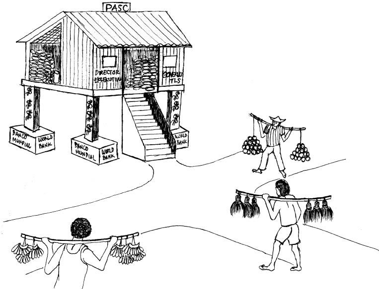 Aside from the debatable value of the PASCs, there are also a number of problems with their implementation. The PASC structure is confusing and many questions remain unresolved. For example, why does one PASC receive more World Bank funding than another? What measures are being taken to ensure that the PASCs are run in an inclusive and accountable way? The ARP information brochure states that “membership of the PASC is open to the general population engaged in agriculture.” However, problems have been reported in one subdistrict where political alliances have influenced the focus group to discriminate against certain members of the community who wanted to join the PASC. Additionally, PASCs are highly centralized, generally existing in the main town of a district. This means that members who live close to the Center are able to participate in the activities of the PASC much more easily than those in outlying subdistricts.