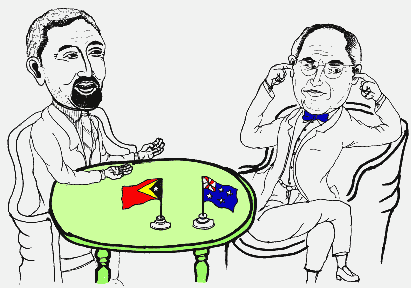 The first round of boundary talks took place in Darwin last November 12, more than a year later. East Timor asked for monthly meetings until boundaries are settled, but Australia will only meet every six months, claiming they don’t have enough people or money to meet more often. See previous page for Australia’s position, and the distortions they tell to defend it.