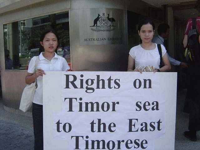 Together with solidarity activists in Australia, the United States and around the world, La’o Hamutuk has been encouraging and facilitating a worldwide campaign to pressure and shame Australia into respecting East Timor’s nationhood. Just before the November talks, more than 100 organizations from 19 countries wrote to Australian Prime Minister John Howard, urging his government to set a firm timetable for establishing a permanent maritime boundary within three years, and to treat East Timor “fairly and as a sovereign nation, with the same rights as Australia.”