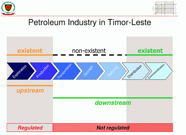Moreover, good information should be provided to the public in order to regain the community’s confidence in PNTL. Although Resolution No. 3 emphasizes community participation, this was given little implementation. Several community leaders told La’o Hamutuk that they only heard about the screening process through the mass media. Consequently, the leaders and the public have not been involved in the process very much. The training, requalification and mentoring processes have brought some additional problems to light. For example, 27% of those required to attend firearms recertification training did not show up; of those who did, 44% failed the course, even after UNPOL trainers lowered the standards "by as much as possible to meet pass level." The latest information we could obtain is that 81 PNTL officers have completed six months mentoring with UNPOL. Of these, 15 were rejected for absenteeism, while 22 were directed to undergo an additional six-month mentorship. Only 44 have been fully certified as PNTL officers. Considering that all of these were serving PNTL officers before April 2006, it is clear that both individual and institutional development of PNTL is not where it should be. If Timor-Leste is to return to a peaceful democracy, based on objective and effective application of the rule of law, the integrity of the individuals and institutions involved in law enforcement is essential. The screening process and phased transition from UNPOL to PNTL are important steps, but even more critical is the community’s confidence that the law will be applied equality and fairly to all citizens. La’o Hamutuk encourages those involved in this process to continue to improve public awareness and involvement, and to address institutional weaknesses with the same seriousness that has been applied to screening individual police officers. Restructuring Petroleum Regulation in Timor-LesteAs La’o Hamutuk has often written, petroleum development is one of the most important elements of Timor-Leste’s future. If done well, it can bring revenues and development to our country, but if done poorly it will inflict a "resource curse" on current and future generations. The amounts of money involved and potential for corruption, collusion and nepotism are so large that transparency and accountability are essential if the people of Timor-Leste are to benefit from our petroleum resources. Unfortunately, recent draft laws contain many loopholes and avenues for corruption and other curses, and contradict the Government’s often-stated support for transparency and accountability. If passed as proposed, these laws would make it easy for a small number of people to get rich off Timor-Leste’s oil and gas resources, leaving the rest of our population in poverty. The Timor-Leste government is restructuring its regulation of the petroleum sector, including creation of the PETROTIL national oil company of Timor-Leste. In addition, the Timor Sea Designated Authority (TSDA) will merge with the National Directorate of Oil and Gas (Direcção Nacional do Petróleo e Gás - DNPG) to become a single agency of the Timor-Leste government. A National Council on Energy Policy will oversee the new regulatory agency, as well as establishing Timor-Leste’s national energy policy (generation, import and distribution to domestic consumers and international customers). The laws also implement other changes involving regulation and policy-making for the petroleum sector. All agencies and functions established by the new legislation remain under the Ministry of Natural Resources, Minerals and Energy Policy (MNRMEP).