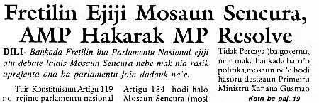 | Timor Post 24 Sept 2009 | Fretilin Demands Censure Motion Debate, AMP wants the Prime Minister to Resolve it | |