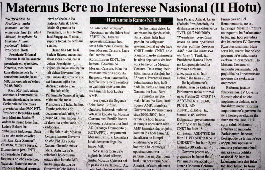 ![]() | Timor Post 23 Sept 2009 | Maternus Bere Case, Fretilin asks Prime Minister to Explain to Parliament |