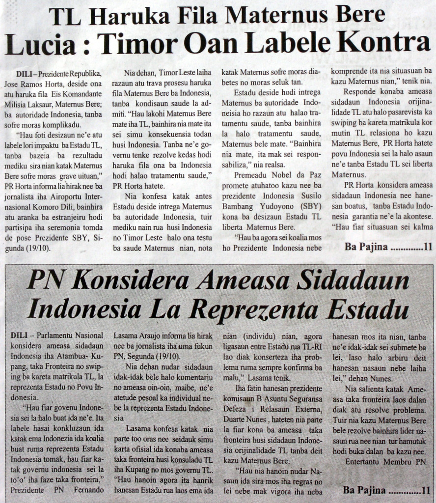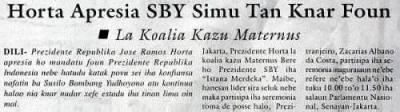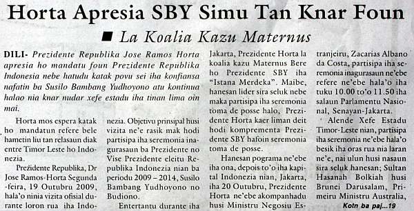 | Timor Post 22 Oct 2009 | Horta appreciates SBY accepts another term Does not talk about Maternus case | |