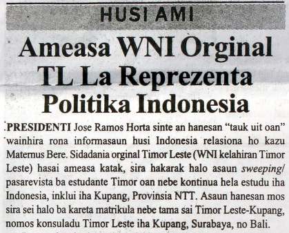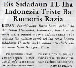 | Timor Post 19 Oct 2009 | Indonesia rejects sweeping of Timorese in Atambua (West Timor) | |