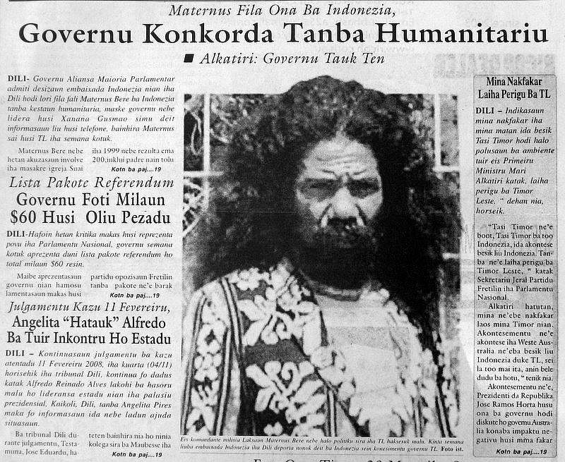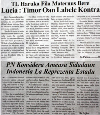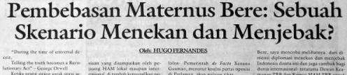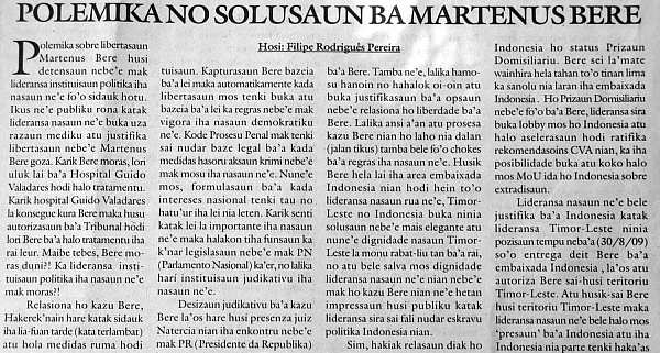 | Timor Post 26 Sept 2009 | Releasing Maternus Bere: Is a scenario for pressure and a trap? By Hugo Fernandes | |