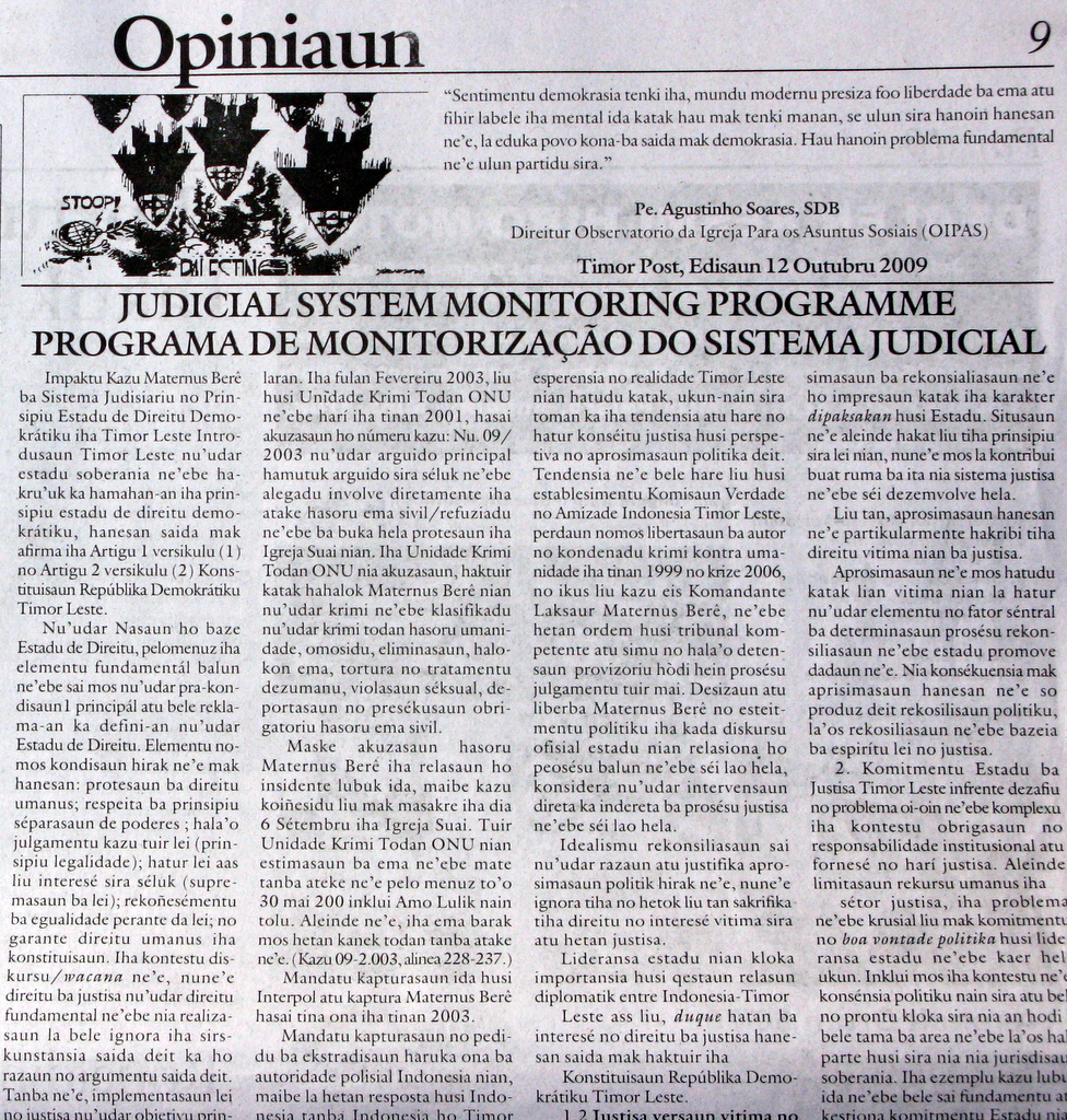 | Timor Post 14 Oct 2009 | Op-Ed from JSMP | |