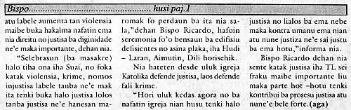 | Timor Post 28 Sept 2009 | Bishop Ricardo: Must have Justice, especially for Maternus Bere | |