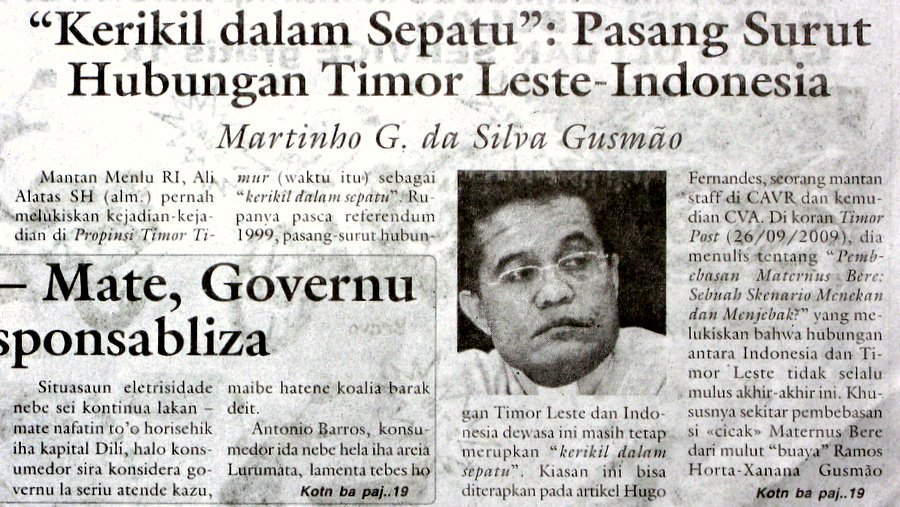 | Timor Post 5 Oct 2009 | "A pebble in the shoe": Instability in the Timor-Leste-Indonesia relationship By Fr. Martinho G. da Silva Gusmao | |