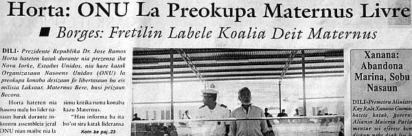 | Timor Post 7 Oct 2009 | Horta: UN Not Worried that Maternus is Free Borges: Fretilin can't only talk about Maternus | |