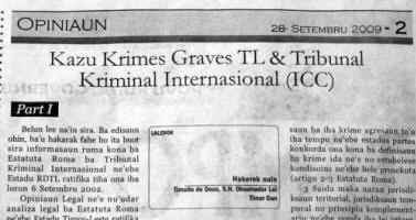 Liga ba artigu ida ne'e. | Tempo Semanal 28 Sept. 2009 Also published in Timor Post, 1 Oct. | Serious Crimes Cases in TL and the International Criminal Court by Timotio de Deus |