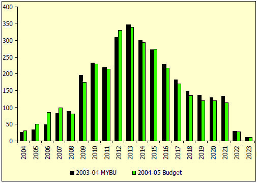 Year | 2003-04 MYBU | 2004-05 Budget |