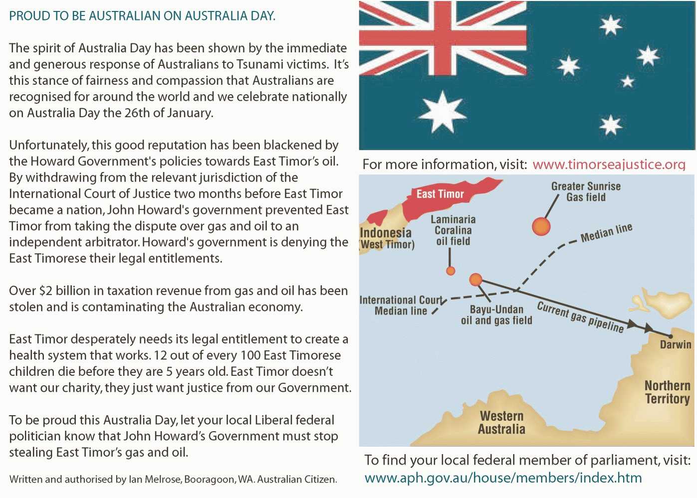 26 Jan 2004: Worldwide actions on Australia's national day protest their theft of Timor-Leste's resources.