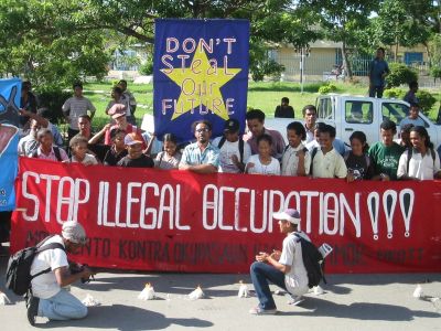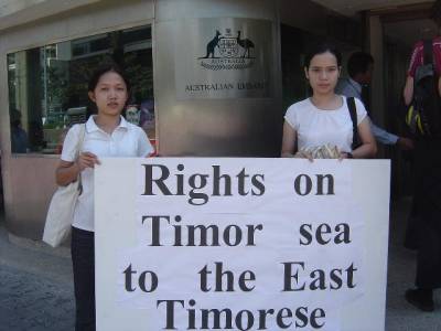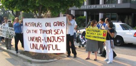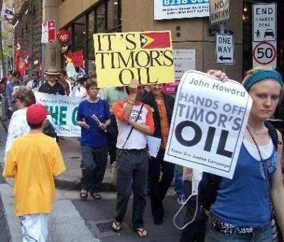 April 2004: New campaigns to protest Australia's theft of Timor-Leste's resources are launched on both sides of the Timor Sea: The Timor Sea Justice Campaign in Australia and the Movement Against the Occupation of the Timor Sea in Timor-Leste. Large protests are held in Dili.