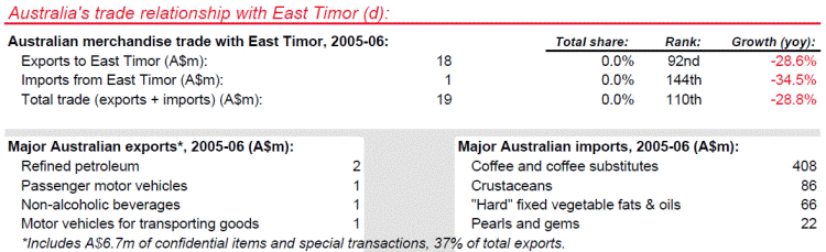 Compiled by the Market Information and Analysis Section, DFAT, using the latest data from the ABS, the IMF and various international sources. Other bilateral treaties with East Timor