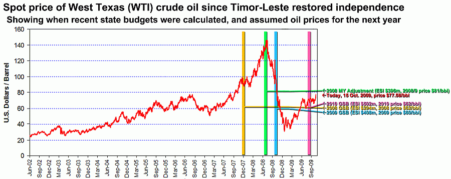 | Committee C held hearings on the State Budget: Parliament debated many amendments, and approved the entire budget on 3 December, increasing the expenditures by $23 million to a total of $660 million. The changes are detailed in a government Press Release. The President promulgated the Budget Law (Tetum) on 15 December 2009. We have written a detailed page on issues and implications of Timor-Leste borrowing money. On 1 June 2010, the Government proposed a mid-year budget adjustment to parliament, increasing expenditures for 2010 by $178 million, while withdrawing up to $811 million (a $309 million increase over the ESI withdrawal already approved) this year. | Komisaun C halo audensia publiku kona ba Orsamento Geral Estadu nian. | 26-27 Out. | Ministra Finansas | | 28 Out. | Ministru Turismo, Komersiu no Industria Ministru Ekonomia no Desenvolvimentu | | 29 Out. | Autoridada Bancaria no Pagamentu Konselhu Konsultative Fundu Petroleu | | 30 Out. | Sec'y Estadu Rekursu Naturais Authoridade Nasional Petroleu | | 4 Nov. | NGO La'o Hamutuk NGO Luta Hamutuk NGO Forum Labeh | | 6 Nov. | Permanent specialized committees submit reports | | 10 Nov. | Membru sira Kom. C aprova relatoriu | | 18 Nov. | Hahu debata iha plenariu kona ba generalidade, ho diskursu husi Primeiru Ministru | | 3 Dec. | Parlamentu Nasional aprova revisaun OGE 2010 |