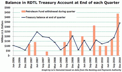 - $141 million from the Consolidated Fund (unspent transfers from the Petroleum Fund during 2010).