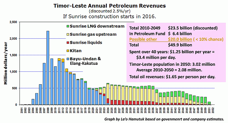 Our petroleum reserves are small and finite. Even if we succeed in bringing the Sunrise gas pipeline to Timor-Leste, and even if current exploration finds new oil or gas deposits to develop, our total oil revenues are likely to be less than $50 billion. If we spend them all as they came in, averaged over our population and 40 years of production, this averages about $1.65 per citizen per day, or less than twice the 2010 State Budget. If the oil revenues are squandered on ill-considered infrastructure projects, avoidable imports, or handouts to troublesome groups, most of our people will not benefit. The previous paragraph does not consider the sustainable spending limits in the Petroleum Fund, as they are largely being ignored. If some money is saved for the future, we could continue to draw on our petroleum wealth for longer than 40 years, but at an even lower level than $1.65/person/day. If the Petroleum Fund Law is revised and money is invested at higher risk, both the level and the duration could be less or more. The Prime Minister's draft National Strategic Development Plan envisions massive expenditures in physical infrastructure but ignores human resources, especially health and education. If we do not use our own people to develop our nation, we will have nothing left when the expensive projects built by foreign companies deteriorate or become white elephants. And if the plan's intention to borrow billions of dollars is carried out, we will still have to make payments on the debt. Timor-Leste's economy is weak, but we are fortunate enough to have some oil wealth which could improve our people's lives and develop our economy for the day, less than a generation from now, when our only producing oil and gas field will run dry. If we don't use this opportunity, our children and their children will still live in poverty, wondering what their parents were thinking when they spent the nation's entire nonrenewable resource birthright without creating an economy to replace it.